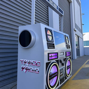 The TRACC RADIO Boombox is more than a DJ stand, it’s an oversized boombox that transforms any event into an experience. Designed to turn heads, it doubles as a live showcase, streaming music videos, karaoke and displaying your favorite digital photos or text to set the perfect vibe. Whether you want a bold statement piece for your party or a live broadcast straight from the station, the Boombox adds to the DJ energy. Custom package options are available to make your event unforgettable.
